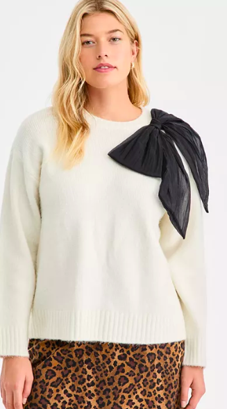 On 34th Women's Long-Sleeve Bow Sweater, M