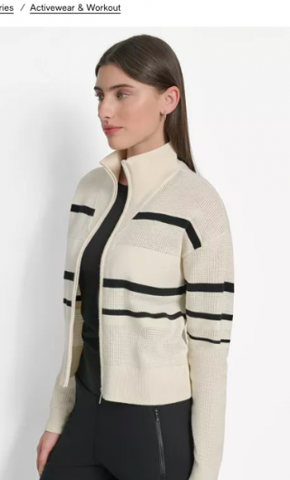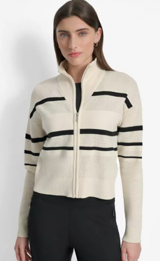 DKNY Women's Open Stitch Full Zip Stripe Jacket