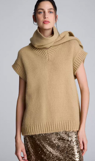 Kenneth Cole Women's Sleeveless Detachable Scarf Sweate