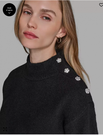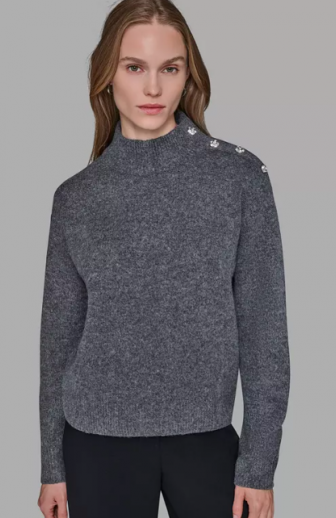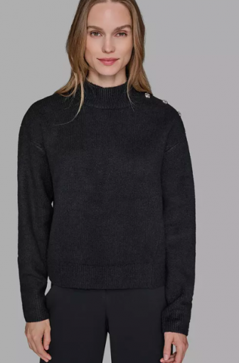 KARL LAGERFELD PARIS Women's Button Shoulder Long Sleev
