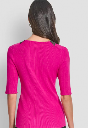 DKNY Women's Embellished-Neck Half-Sleeve Ribbed Sweate