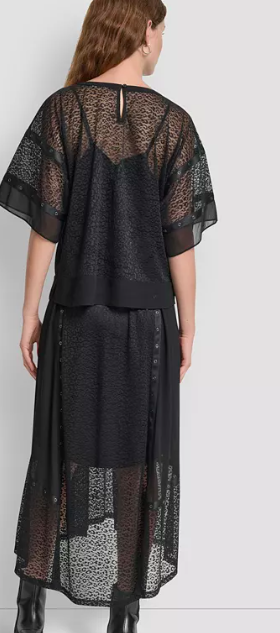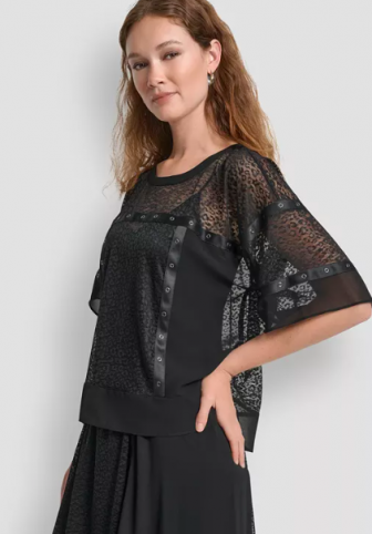 DKNY Women's Leopard Mesh Short Sleeve Flowy Box Top