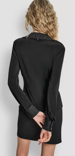 DKNY Petite Knot-Front Collared Long-Sleeve Top