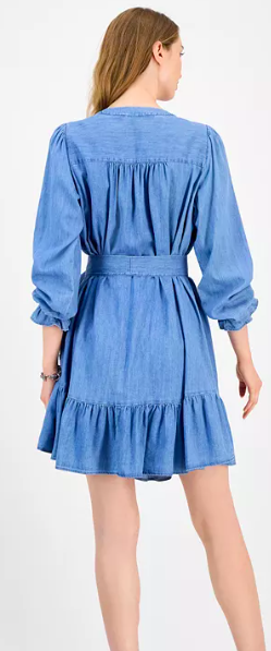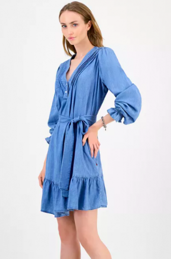 Tommy Hilfiger Women's Belted Ruffled Chambray Dres