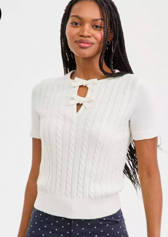 Nautica Jeans Women's Bow Cable-Knit Short-Sleeve Sweat