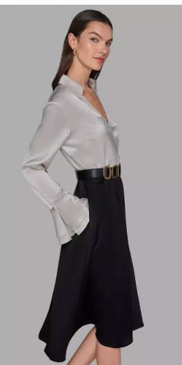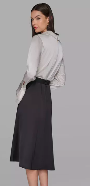 KARL LAGERFELD PARIS Women's Two Tone Collared Midi Dre