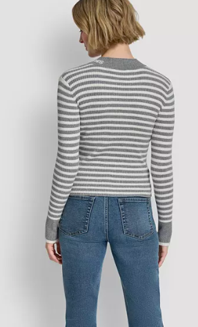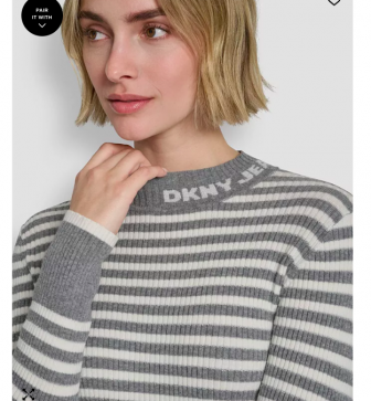 DKNY Jeans Women's Long-Sleeve Mock Neck Rib Striped Sw