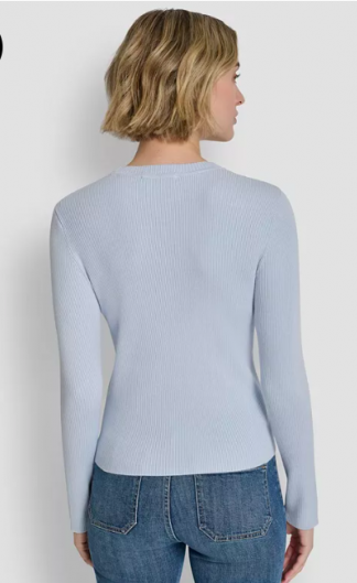 DKNY Jeans Women's Long-Sleeve Logo Trim Crewneck Sweat