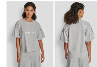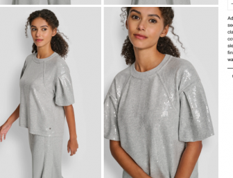 DKNY SEQUIN PUFF SLEEVE SWEATER