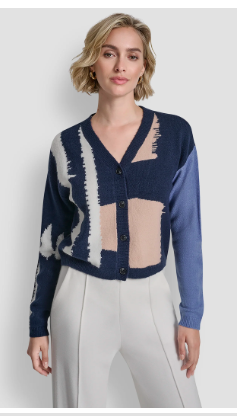 DKNY CROPPED COLORBLOCK CARDIGAN