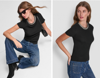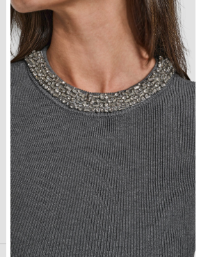 DKNY SWEATER WITH EMBELLISHED NECKLINE