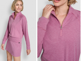 DKNY SPACEDYE HALF ZIP RAGLAN SLEEVE PULLOVER