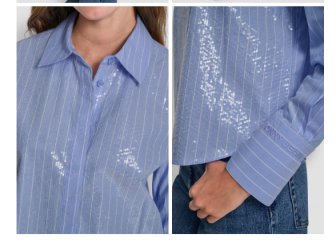 DKNY POPLIN BUTTON FRONT SHIRT WITH SEQUINS