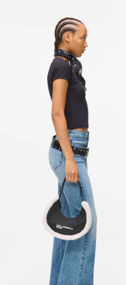 KARL LAGERFELD PARIS Shearling moon shoulder bag