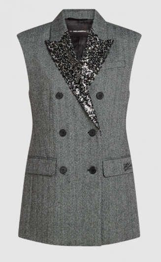 KARL LAGERFELD PARIS Sequin lapel tweed gilet