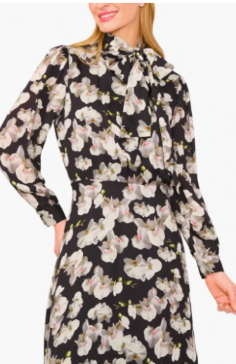 Floral Tie Neck Long Sleeve Dress Ted Baker