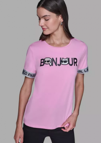 KARL LAGERFELD PARIS Women's Choupette Printed Short-Sl