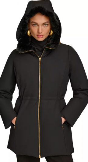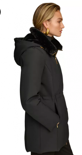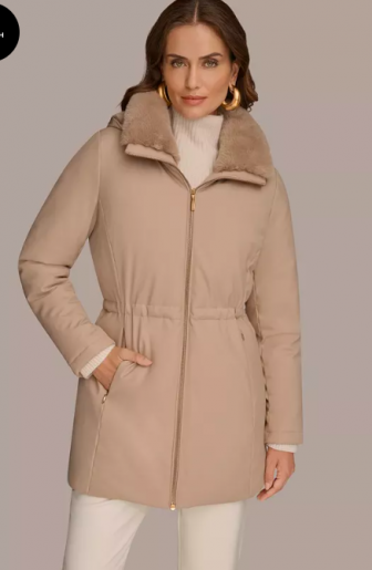 Donna Karan New York Women's Faux-Fur-Collar Short Puff