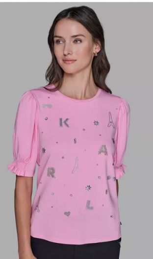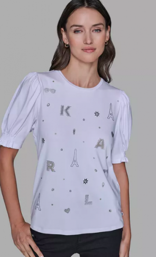 KARL LAGERFELD PARIS Women's Puff Sleeves T-Shirt