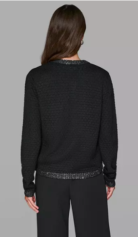 KARL LAGERFELD PARIS Women's Crewneck Textured Cardigan