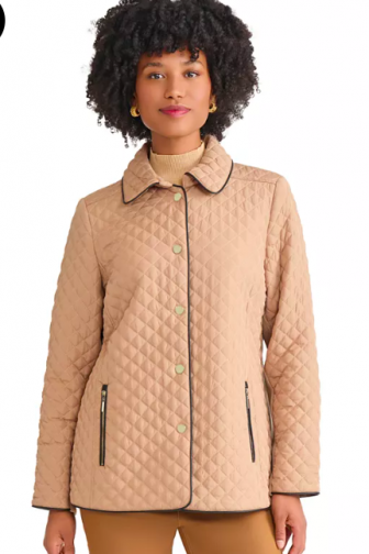 Jones New York Women's Quilted Snap Front Long Sleeve J