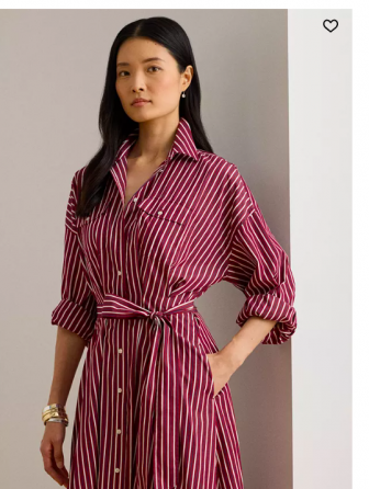 Ralph Lauren Women's Striped Belted Broadcloth Shirt d