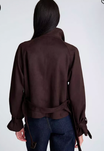 Kenneth Cole Women's Faux Suede Cropped Belted Trench J