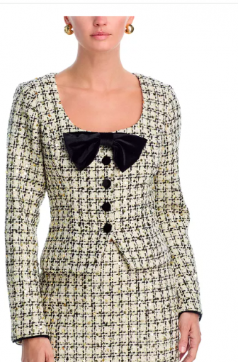 AQUA Sequin Tweed Velvet Bow Jacke