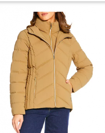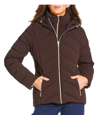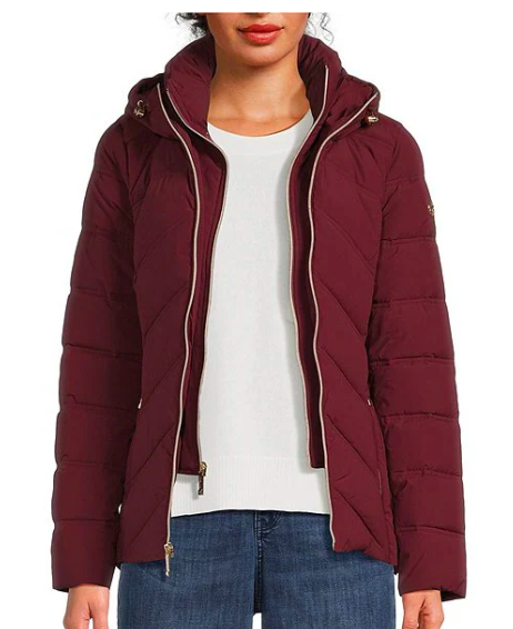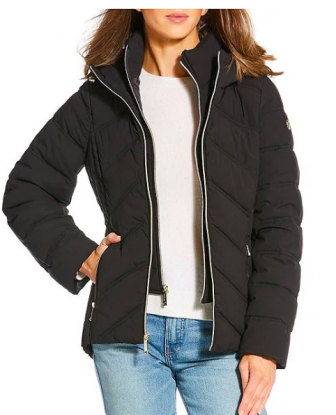 Michael Kors Quilted Stand Collar Hooded Water Resistant Zip