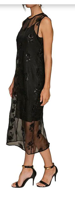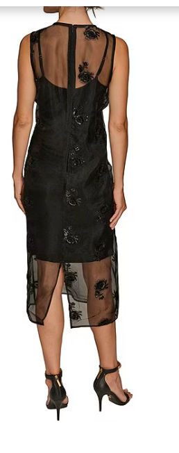 Donna Karan Floral Beaded Organza Mock Neck Sleeveless Midi