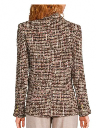 Donna Karan Tweed Notch Collard Long Sleeve One Button Jacke