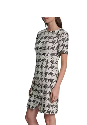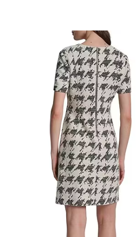 DKNY by Donna Karan Houndstooth Print Short Sleeve Sheath Dr