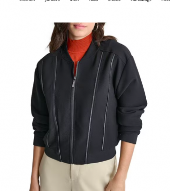 DKNY by Donna Karan Zipper Seamed Double Weave Bomber Jacket