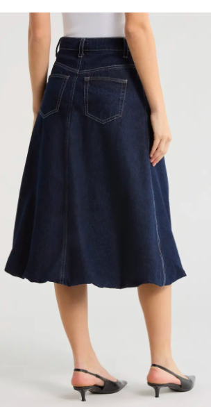 Bubble Hem Denim Midi Skirt JASON WU