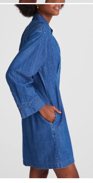 Pleated Denim Mini Shirtdress Madewell