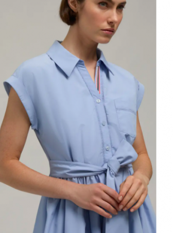 Embroidered Placket Cap Sleeve Fit & Flare Shirtdress Hu