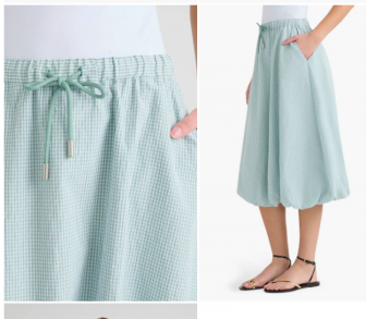 Gingham Bubble Hem Cotton Blend Midi Skirt Hunter