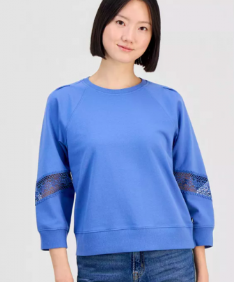 Nautica Jeans Nautica Women's Pleated Lace-Trim 3/4-Sle