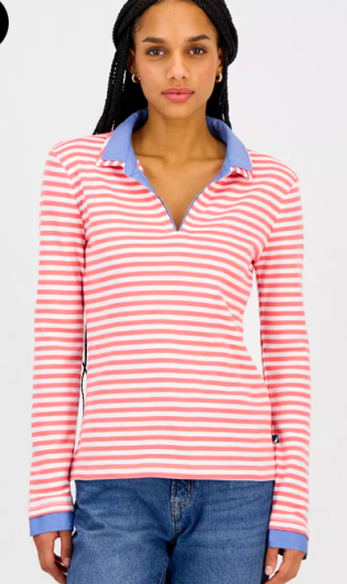 Nautica Jeans Nautica Women's Striped Double Collar Lon