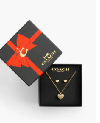 Pavé Heart Pendant Necklace & Stud Earrings Set COACH