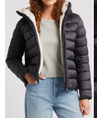 Gretel Faux Shearling Lining Hooded Puffe Save The Duck