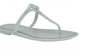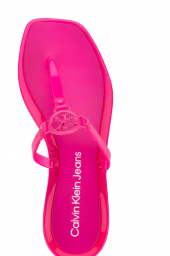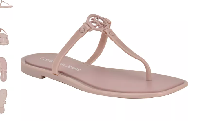 Calvin Klein Women's Edhen Logo T-Strap Flat Jelly Sand