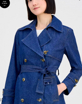 Anne Klein Women's Double-Breasted Cotton Denim Trench