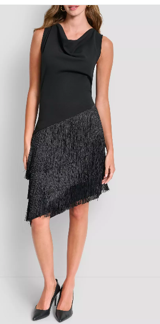 DKNY Women's Cowl Neck High-Low Tiered A-line Dress