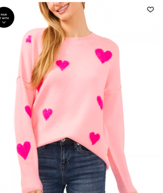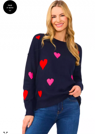 CeCe Women's Valentine's Crewneck Heart-Print Long