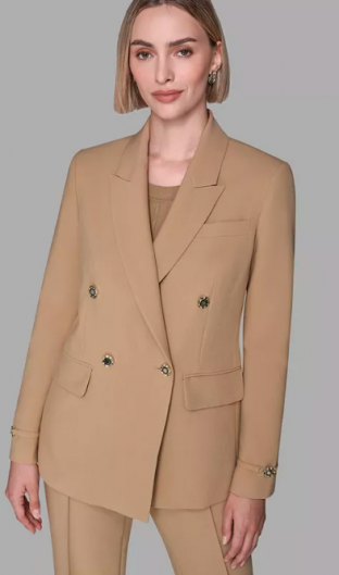 KARL LAGERFELD PARIS Women's V-Neck 1-Button Front Doub