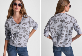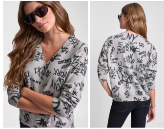 DKNY LOGO PRINTED V-NECK PULLOVER