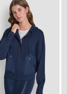 DKNY DROP SHOULDER ZIP UP HOODIE