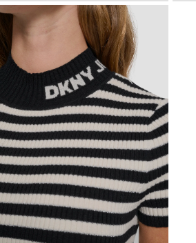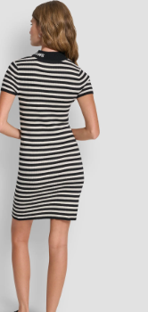 DKNY LUREX STRIPE MOCK NECK LOGO DRESS