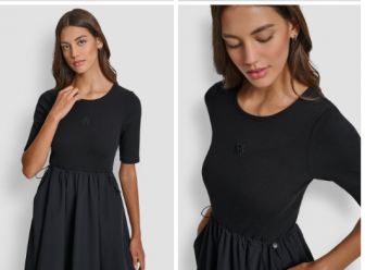 DKNY RIB TANK DRESS WITH POPLIN SKIRT